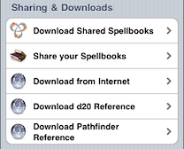 Tap the Download Pathfinder Reference button to download Pathfinder reference spells from www.d20pfsrd.com.